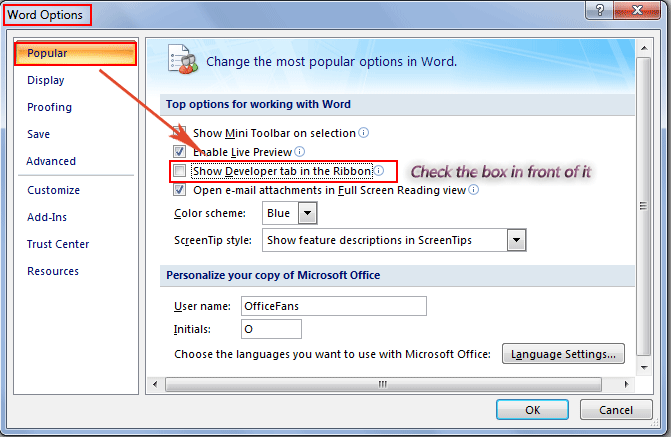 Select the option called show developer tab in the ribbon. Then click on the ok button. In the excel options dialog box, on the popular tab, check the show developer tab in the ribbon checkbox: Click the microsoft office button , and then click excel options : When the excel options window appears, click on the popular option on the left.